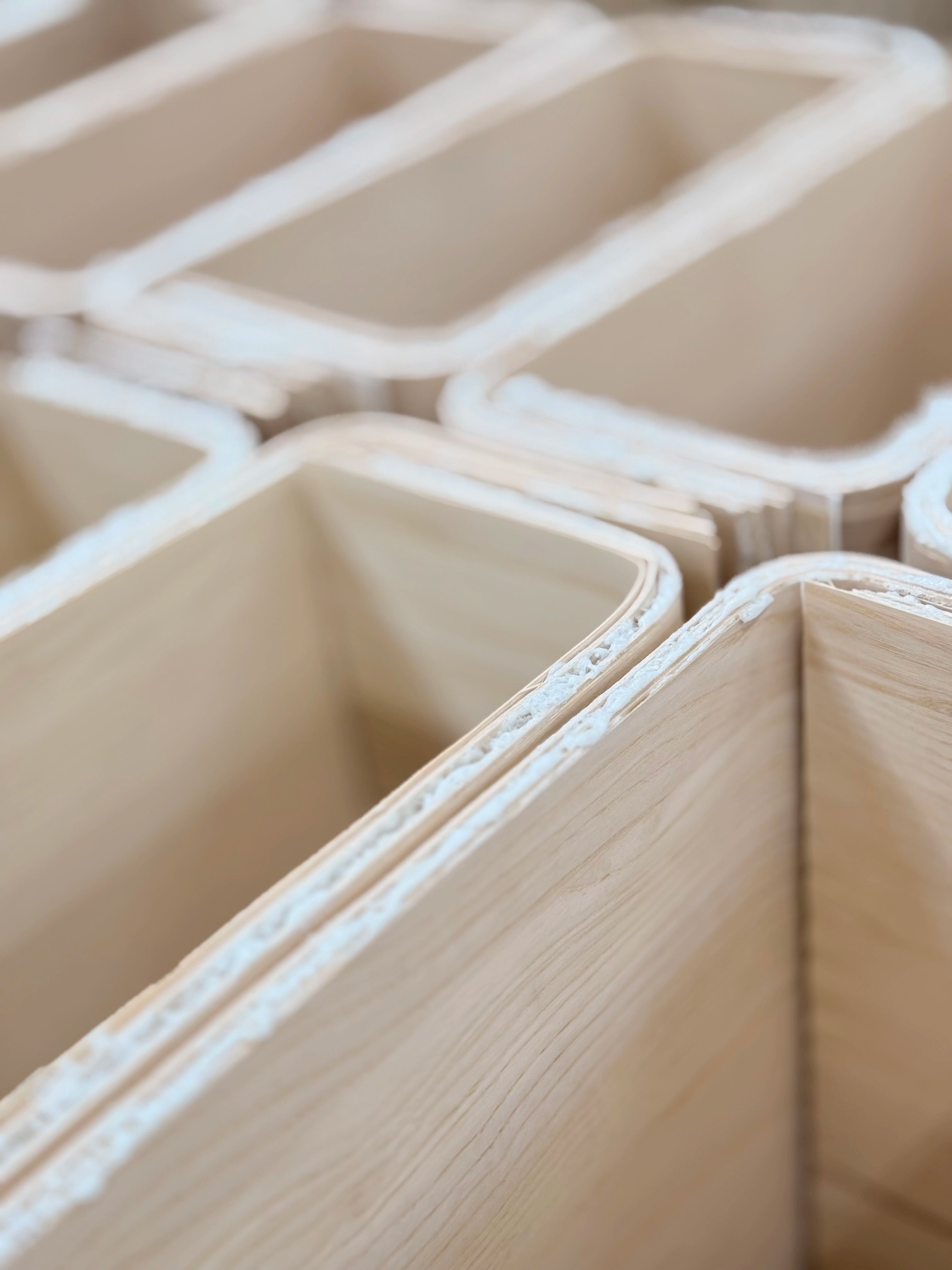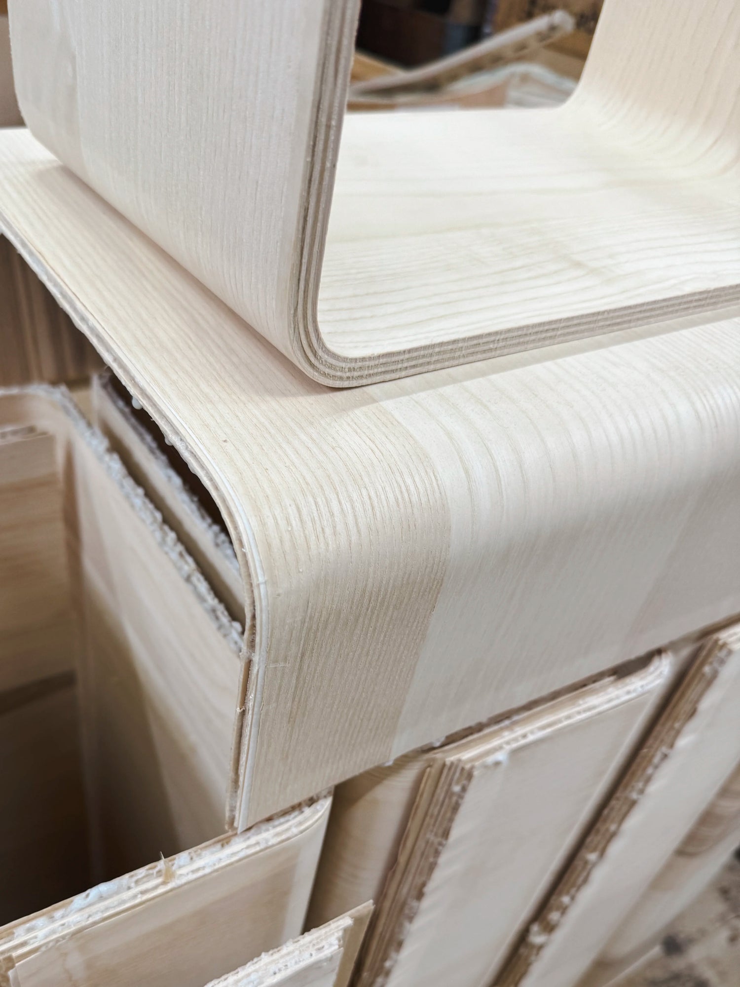 Through careful molding, the veneer is pressed into smooth curves that form the seat and back. The rounded edges eliminate sharp corners, offering both safety for children and timeless design appeal.